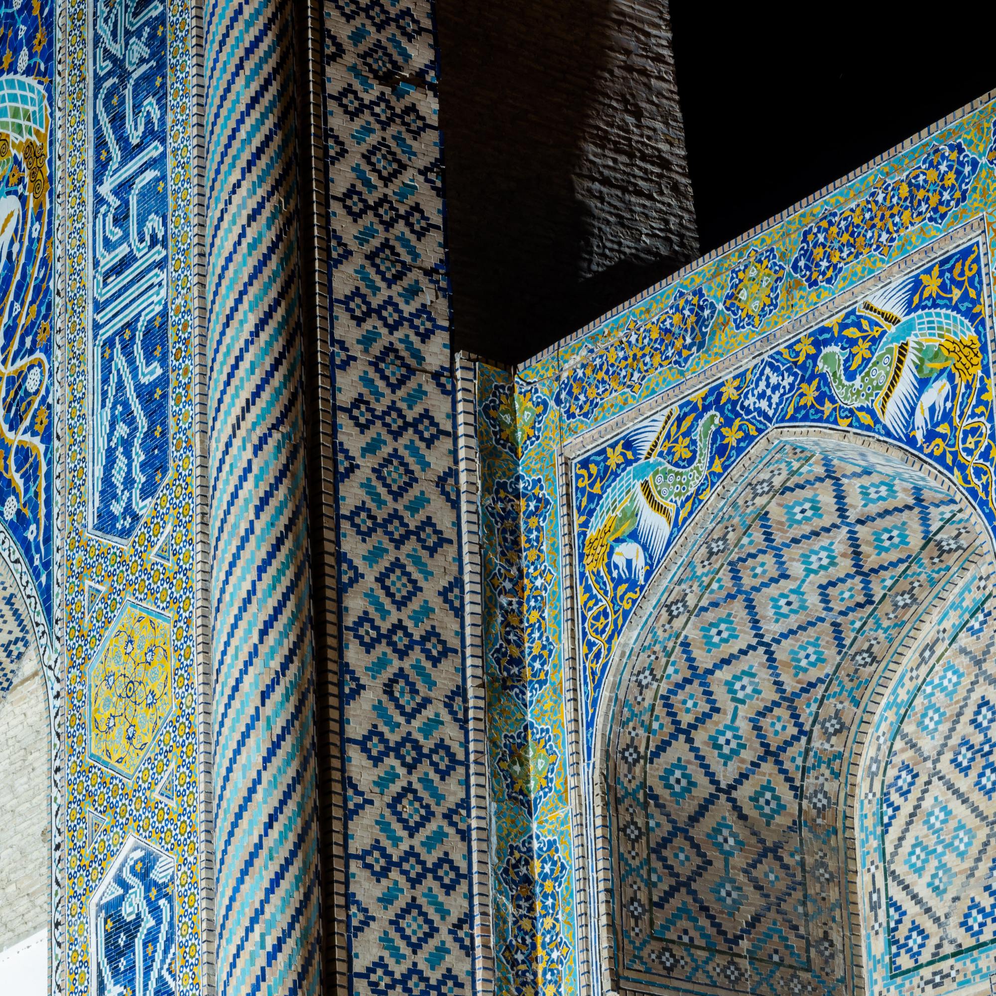 « L’aspiration à la connaissance est le devoir de chaque musulman et musulmanne » – c’est ainsi qu’on lisait la gigantesque écriture sur le portail de la médersa d’Oulough Bek à Boukhara. Les motifs de l’ornement sont dominés par des éléments astraux qui peuvent être associés à la vision du monde d’Oulough Bek en tant qu’astronome.