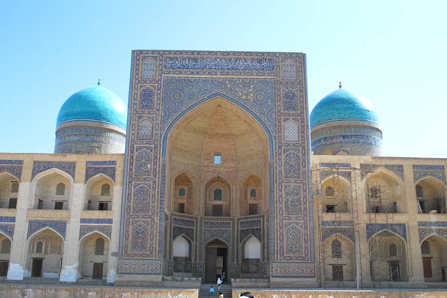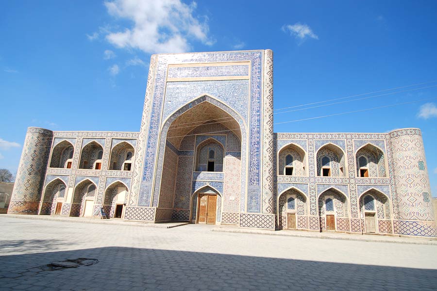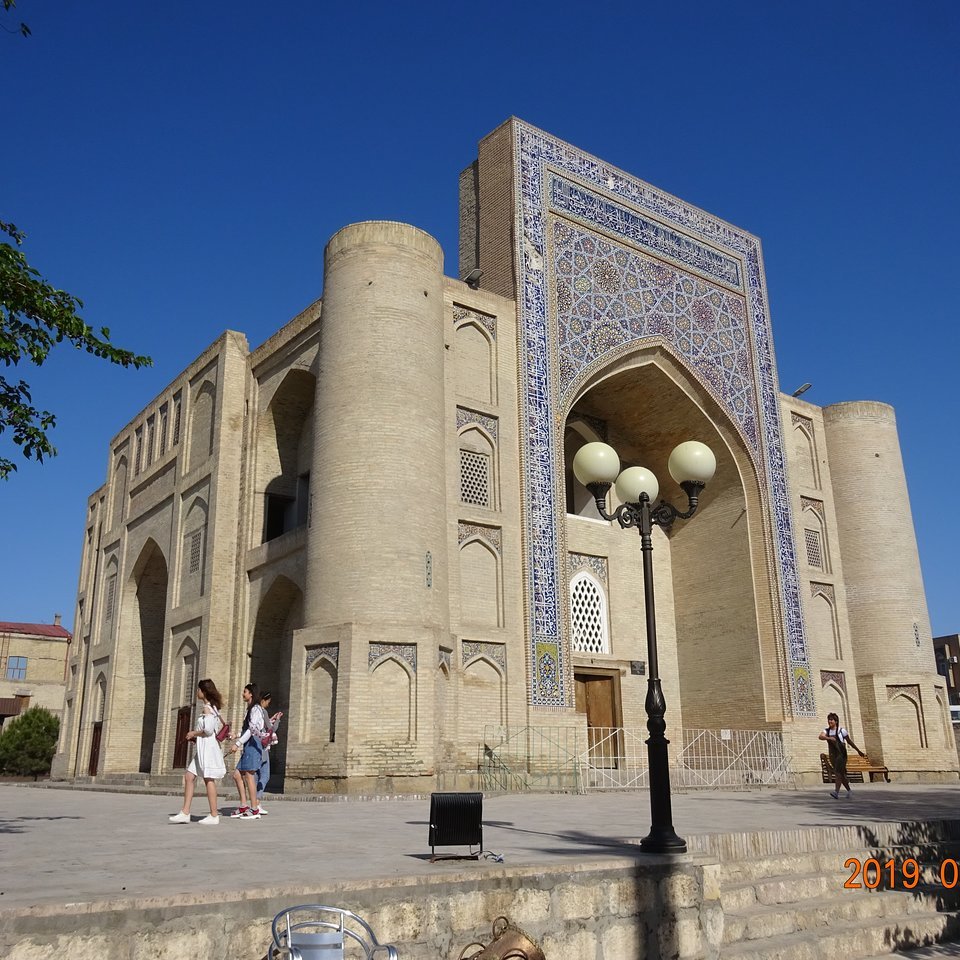 Médersa. La médersa Miri-Arab a été construite au 16e siècle par le cheikh Abdallah Yamani (du Yémen), chef religieux et guide spirituel d’Oubaydoula Khan. Médersa Miri Arab est un édifice d’architecture classique, l’un des plus intéressants de Boukhara. De nos jours les étudiants y suivent les études de l’islam dans le but de recevoir le titre d’imam. De l’extérieur, son allure est imposante et ses deux coupoles bleues rendent un bel écho au Kok Gumbaz de la mosquée Kalon. Elle s’est dégradée au cours des siècles, mais aujourd’hui le bâtiment a bien été restauré.