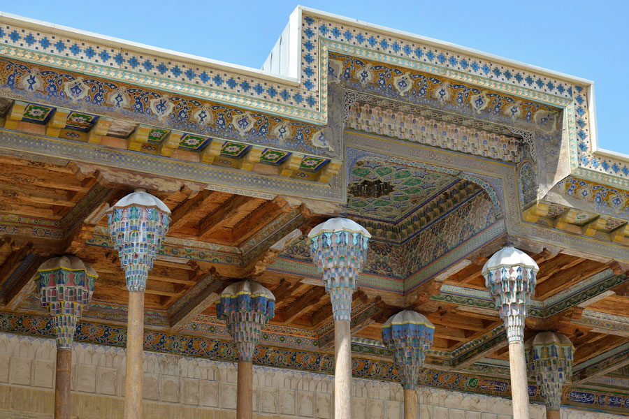 À la fin du XIX et le début du XX siècles, il y a eu un grand essor économique et culturel à Boukhara. À cette époque, l’intérêt pour l’art occidental s’est accru, grâce auquel des objets d’art avec des motifs inhabituels pour l’Orient (tissus, porcelaine), des livres européens, des magazines et d’autres sources des nouvelles informations sont apparus dans le pays. Sous l’influence de ce courant de culture européenne, un nouveau style est né, basé sur l’imbrication de motifs occidentaux et orientaux dans toutes les formes d’art, en particulier dans l’architecture. L’exemple le plus frappant de la synthèse de deux cultures est présenté par la résidence estivale des émirs de Boukhara – Sitoraï Mohi Khossa. La construction du palais a commencé au XIX siècle, sous le règne d’Abdullahad Khan. Ensuite, un groupe des meilleurs maîtres de Boukhara a été envoyé à Saint-Pétersbourg et à Yalta pour se familiariser avec les nouvelles formes d’architecture. La construction a été poursuivie en 1911-1918 par le dernier émir de Boukhara – Saïd Alim Khan. Des artisans célèbres de Boukhara et des ingénieurs russes ont participé à la construction de Sitoraï Mohi Khossa (ce qui signifie – « Palais entre les étoiles et la lune »).