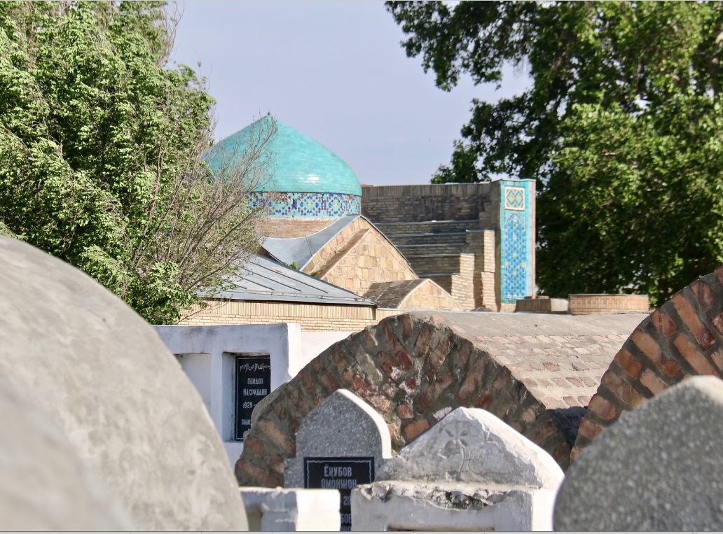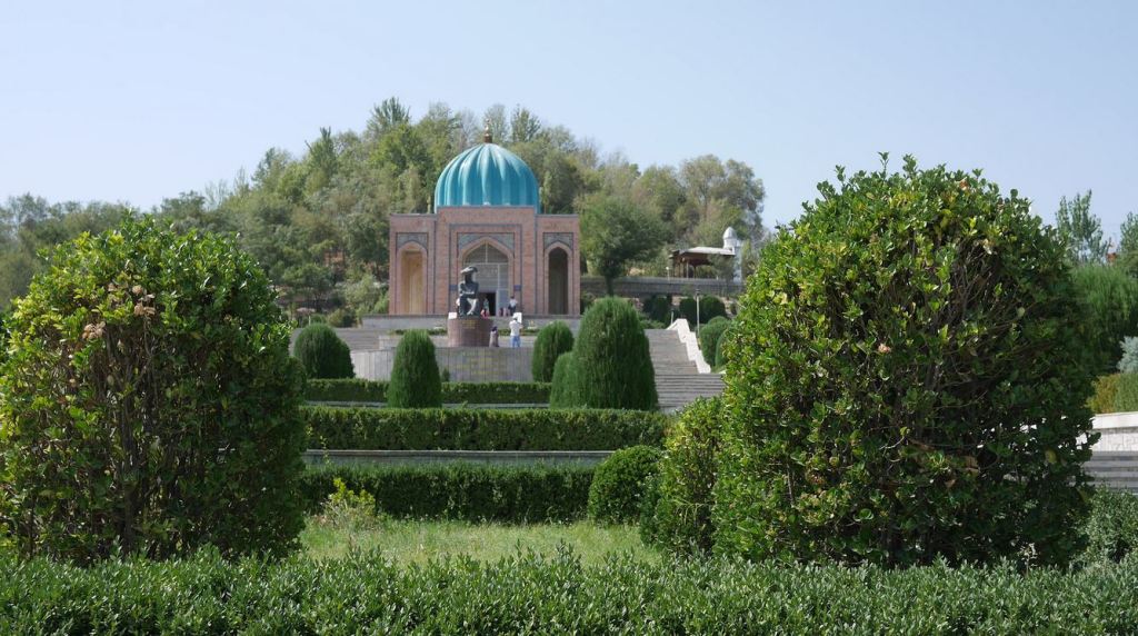 Dakhmai Shakhon – is a tomb of the khans of Kokand which was built in the time of Umarkhan. The set consists of three parts: a hall with a portal, a mosque-aiwan and a family cemetery. The tomb is surrounded by a fence, there is an aiwan for prayers and several tombs, in one of which Umarkhan himself is buried. The facade of the Mausoleum of Umarkhan (1809-1822) and the columns of the Summer Mosque resemble in their decoration the painting of the Bolokhauz mosque in Bukhara. The entrance doors to the tomb are decorated with wood carvings with extracts from the Quran in Arabic and samples of Umarkhan poetry. The area of the tomb is 9.4 by 11.7 meters. In 1971, this architectural building was restored by local craftsmen.