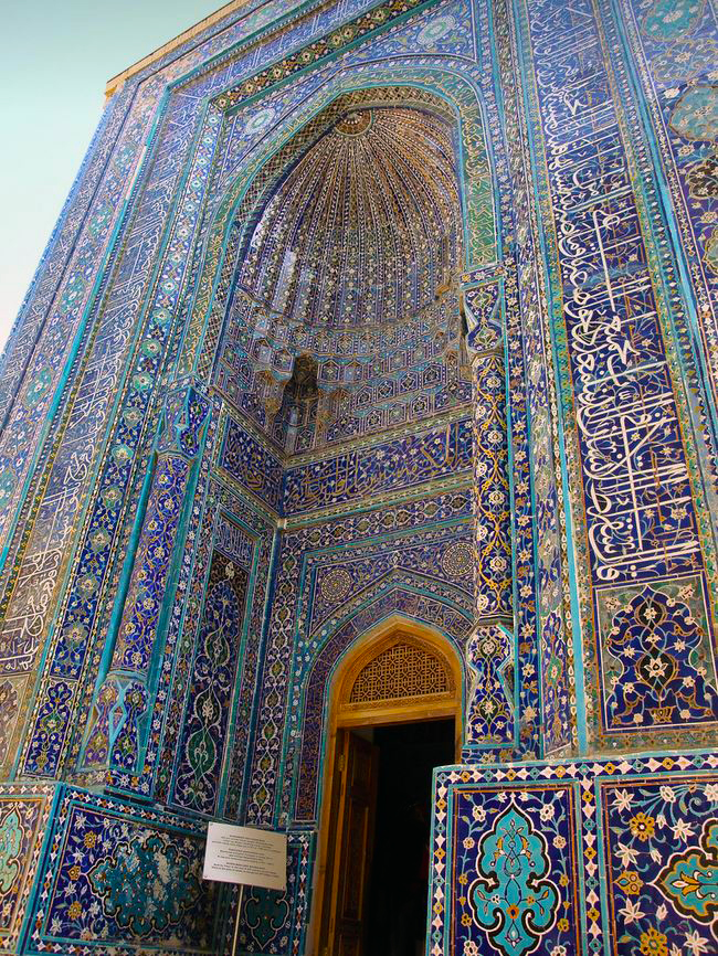 Shakhi Zinda necropolis – is one of the rare and unique pearls of Samarkand architecture. It is here that the members of the Tamerlane family and the noble people of his time rest. The initial part of the necropolis, founded in the 11th century. was the tomb of a saint Kussam Ibn Abbas, assassinated during his prayer, who, according to legend, descended into the deep well and until now awaits the « last Judgment » to return to the earth (hence the name Shakhi ZInda – meaning the « Living King »).