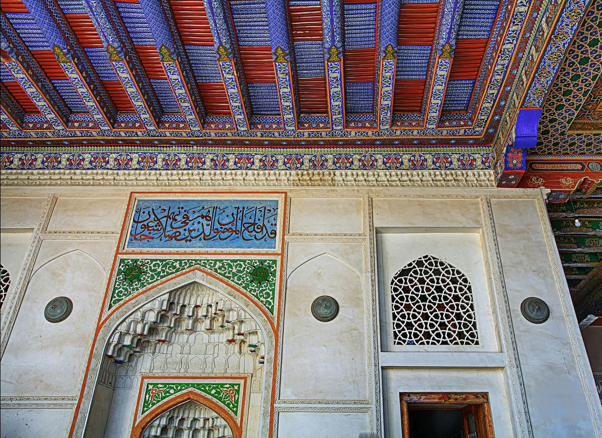 In the XVI century (1630-1631), Nadir-Divan Begi – the minister of Imamkuli-khan of the Achtarkhanid dynasty, ordered the construction of a madrassah and a mosque in honor of a Sufi, the one of the founders of a religious trend « nakhchbandiya » – Khodja Akhrar Vali. At present, the Khodja Akhrar memorial complex includes a madrassah, a summer and winter mosques, a columned aiwan and a small minaret built in 1909. The Nadir-Divan Begi Madrasah is often called the « mirror of Sher-Dor », the madrassah located on the place of Registan. The monument has come down to us in a badly damaged form, but has been well restored over time.