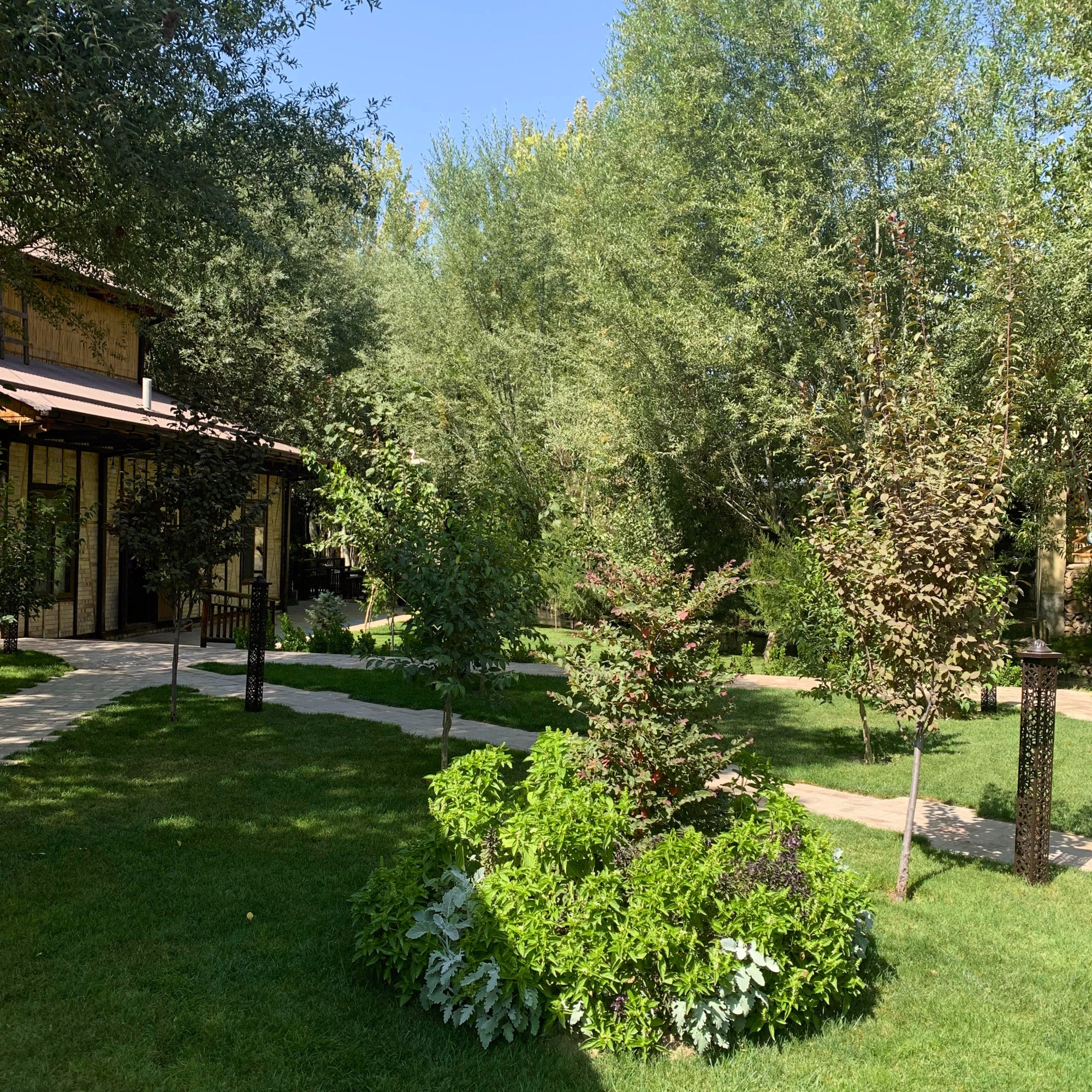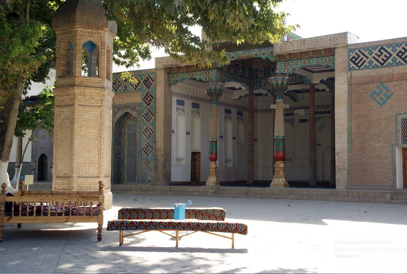 Abdi-Darun – is an architectural ensemble, dedicated to religious, spiritual and educational purposes founded around the ancient cemetery of Samarkand, which developed in the 12th-20th centuries on the tomb of the famous Islamic jurist of the 9th century Abd-al Mazeddin. The core of the whole is represented by the 12th century mausoleum, next to which were built, at different times, khanaka, mosque and madrassah. The radical restructuring of the whole, significantly changing its appearance, was carried out in the 15th, 19th and 20th centuries. The Abdi-Darun complex is one of the most revered Islamic shrines in Central Asia. The Abdi-Darun complex, with the exception of several secondary buildings, is located on an area of 125 by 70 meters. The main architectural elements of the complex are grouped around a square courtyard, most of which is occupied by an octagonal construction surrounded by plane trees. On the northern side of the perimeter, there is a madrassah, whose hujras (cells) and living quarters face the courtyard. To the east, the perimeter is surrounded by a flat-roofed aiwan, resting on wooden columns. On the other side is the Guzar Mosque, consisting of a winter section and a summer aiwan. The mosque is a striking example of the popular Samarkand style of the late 19th – early 20th centuries…